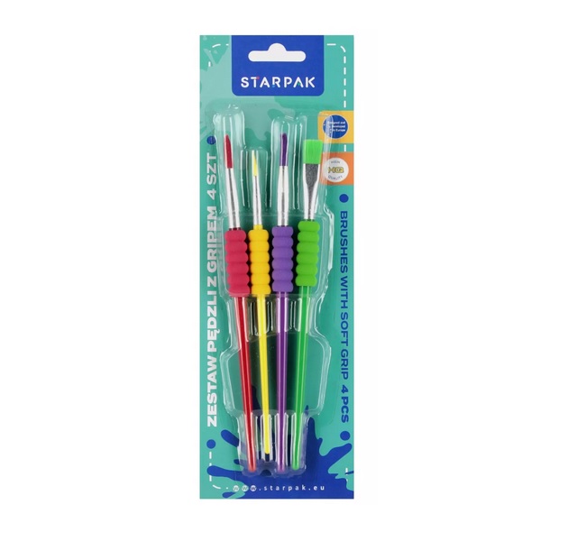 Zestaw pędzli szkolnych z gripem 4szt. Starpak