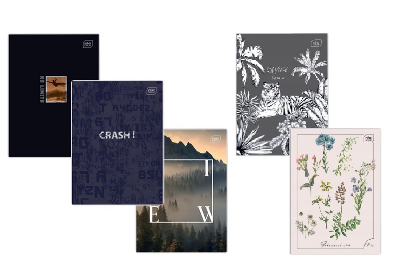 Zeszyty dostępne są nowoczesnych wzorach, zaprojektowanych z myślą o różnych grupach wiekowych i aktualnych trendach w designie.
